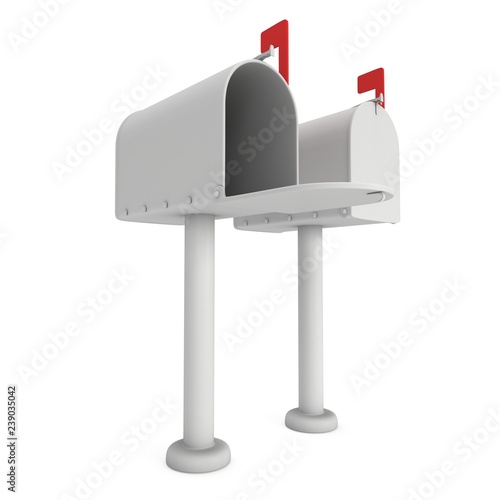 Mailbox with open door and raised flag. 3d render illustration isolated on white background.