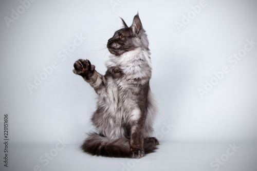 Maine Coon red cat on colored backgrounds