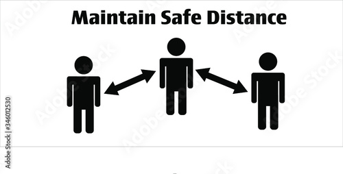 Maintain Safe Distance Concept: Black and white icon vector with arrow and words separating people for public health and safety during Coronavirus (COVID-19), global pandemic.