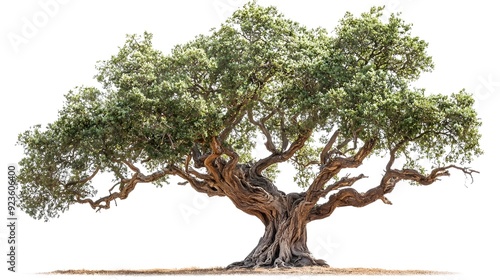 Majestic Ancient Oak Tree with Broad Canopy and Twisted Branches on White Background