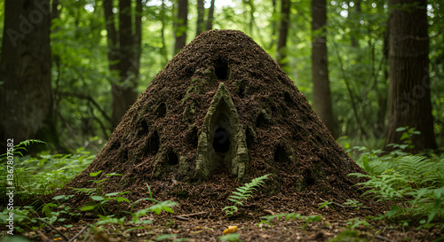 Majestic anthill edifice rising prominently from the verdant forest floor