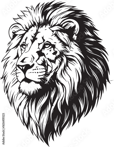 Majestic Black and White Lion Head Illustration, Vector Design
