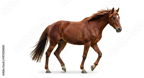 Majestic Chestnut Horse Walking on White Background