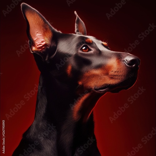 Majestic Doberman Portrait Against a Dark Red Background