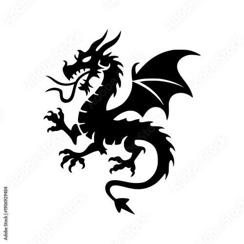 Majestic dragon silhouette with wings spread wide in fierce pose