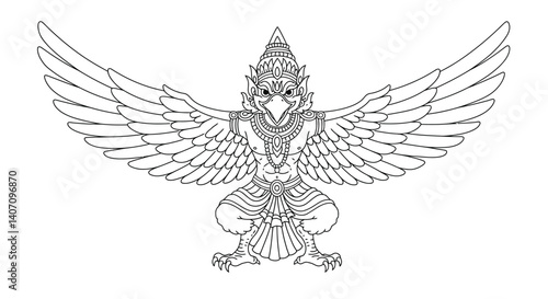 Majestic Garuda King of Birds Mythical Creature Hindu Mythology Coloring Page Illustration for Kids Adults