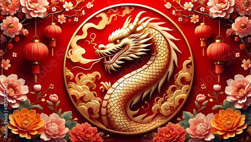 Majestic Golden Dragon A Lunar New Year Celebration Illustration