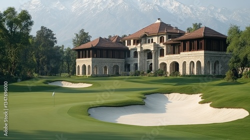 Majestic golf course with a grand estate