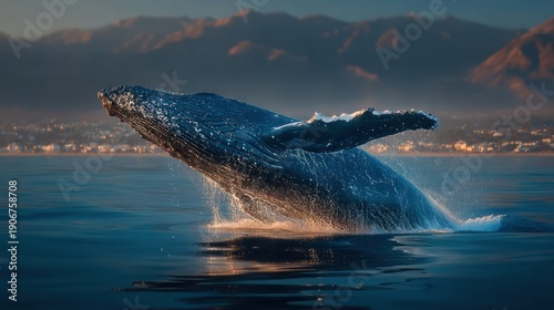 Majestic Humpback Whale Emerging from the Ocean at Sunrise