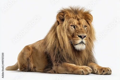 Majestic Lion Resting Serene, Powerful African Cat with Golden Mane, Wild Animal Portrait Photography