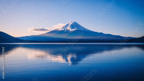 Majestic Mount Fuji Reflected in a Calm Lake at Dawn mountain volcano