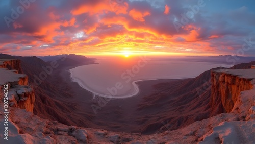 Majestic Mountain Lake at Sunset: A Scenic Landscape of Cliffs, Canyons, and Dramatic Skies