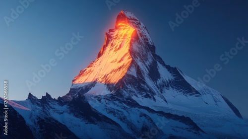 Majestic Mountain Peak Illuminated by Molten Lava at Dawn
