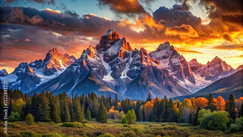 Majestic Mountain Peaks: Rule of Thirds Photography, Stunning Landscape, Epic Mountain Views, Breathtaking Scenery, High-Resolution Image