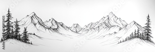 Majestic Mountain Range Illustrated with Evergreen Trees
