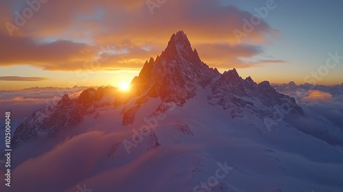 Majestic Mountain Range Sunrise with Rolling Clouds Shot by DJI Mavic Air 2 Drone, Capturing Vibrant Golden Tones in Wide Angle Lens