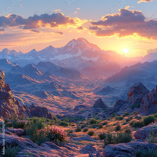 Majestic peak glowing under golden sun high resolution picture