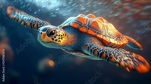 Majestic Sea Turtle Underwater: Vibrant Colors and Graceful Movement in the Ocean Depths