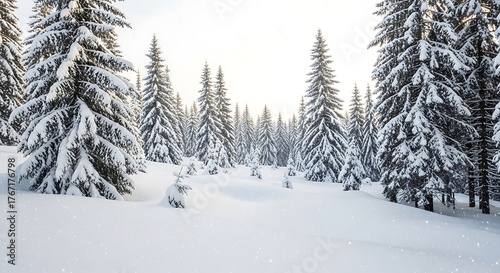 Majestic snow covered pine trees in a serene winter forest landscape