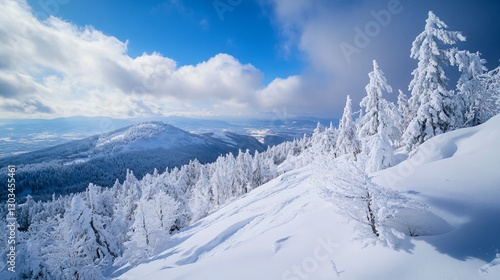 Majestic Snowy Mountain in Winter Landscape - Perfect for Winter Travel Blogs and Outdoor Adventures