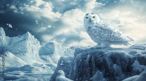 Majestic Snowy Owl on Icy Mountain Peak