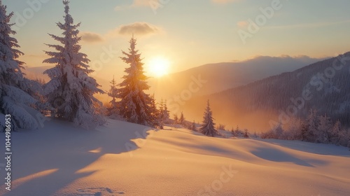 Majestic sunrise in the winter mountain landscape