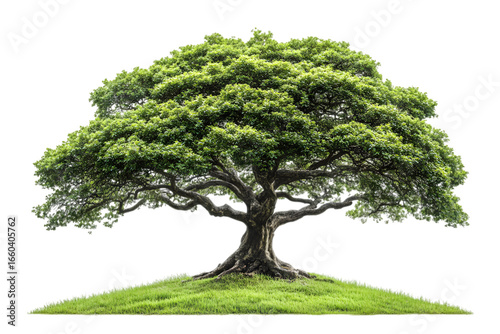 Majestic tree with sprawling branches on a grassy hill, isolated on transparent background
