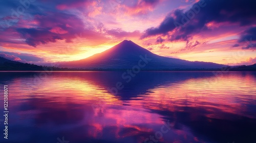 Majestic Volcanic Sunset Reflected in Calm Waters