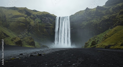 Majestic Waterfall in Dramatic Landscape, Iceland