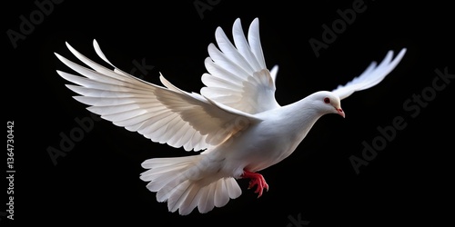 Majestic White Dove in Flight, Black Background - Peaceful Stock Photo