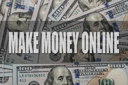 Make Money Online Inscription on dollars background.