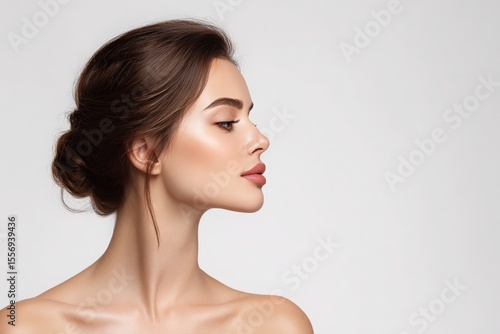 Make up and skin care concept - side view of beautiful women with perfect skin isolated on white background