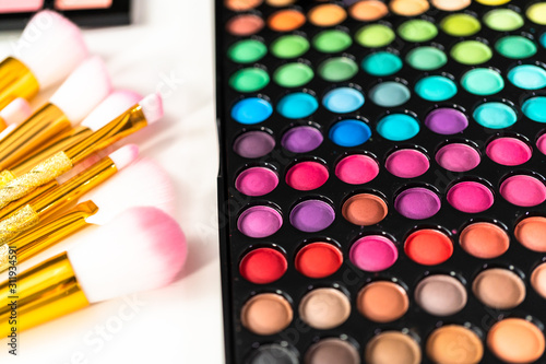 Makeup brushes and eyeshadows