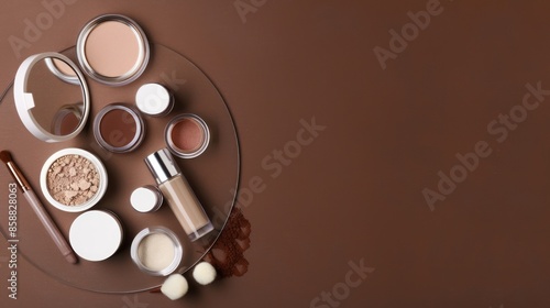Makeup Essentials on a Brown Background