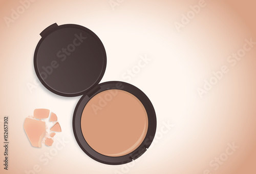 Makeup powder nude color in black powder case which opened. Illustration about cosmetic pack shot.