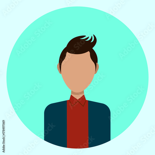 Male Avatar Profile Icon Round Man Face Flat Vector Illustration