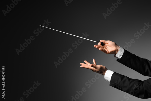 Male conductor's hands on dark background