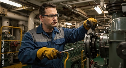 Male mechanic working on machinery in industrial workshop