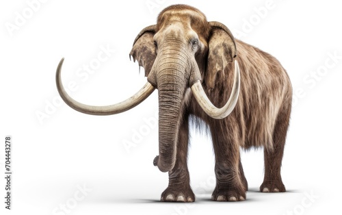 Mammoth with a long job is standing isolated on white background