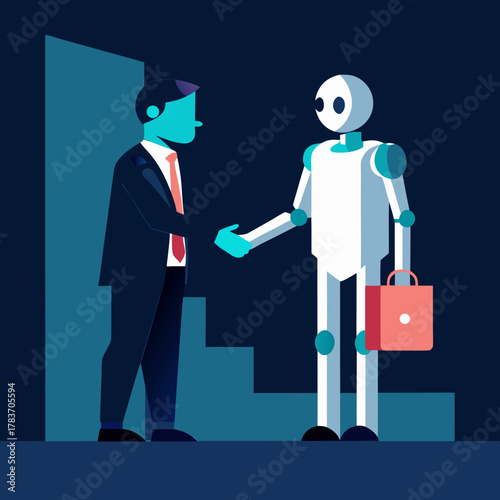 Man and robot shaking hands with a briefcase on a dark background silhouette isolated on white background isolated on transparent background