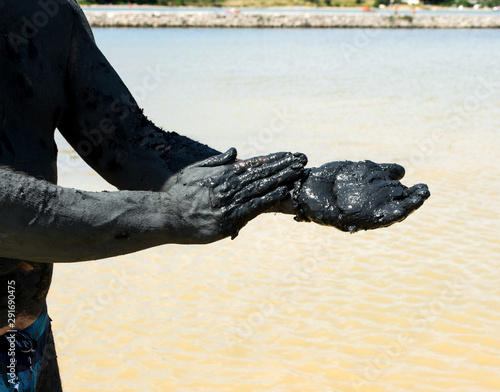 Man applying black healing clay