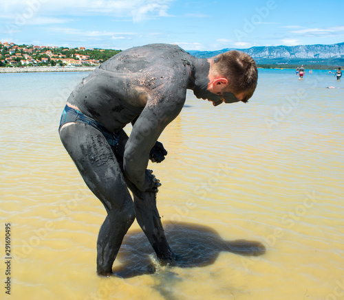 Man applying black healing clay