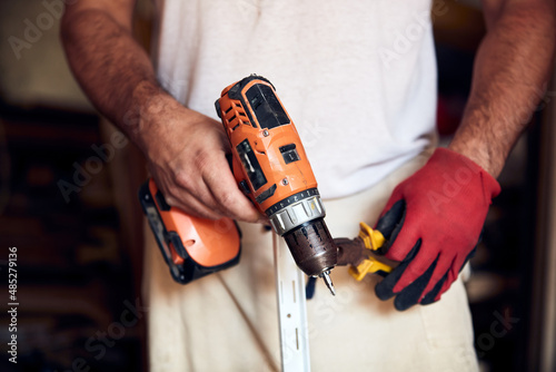 Man assembling furniture and fixing it - hobby concept.