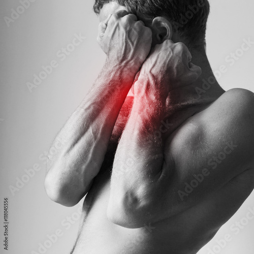 Man blocking pain with his strong hand
