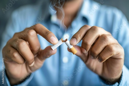Man Breaking Cigarette to Stop Smoking for Prevention of Unhealthy Nicotine Habits