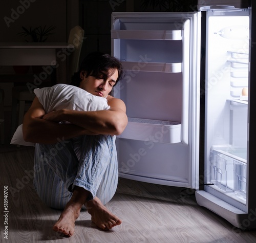 Man breaking diet at night near fridge