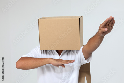 man cover himself with box