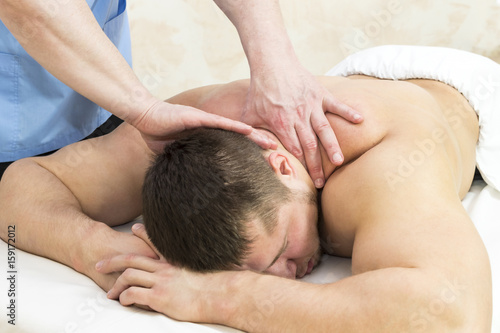 Man doing sports massage at the massage parlor