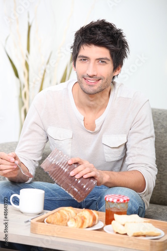 man eating breakfast