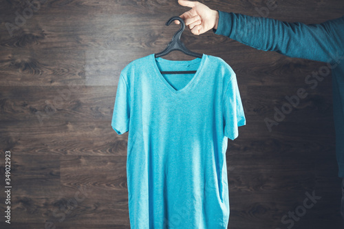man hand hanger of shirt